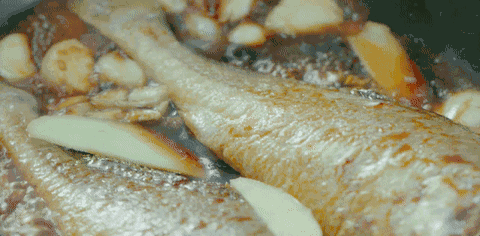 滋滋的煎著黃魚,淋上一勺生抽,燜煮片刻,其標志性蒜瓣肉散發出的味道格外鮮美,仿佛隔著屏幕就能聞到那誘人的鮮香~